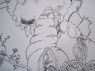I'm being much more careful and precise with this one. It's my first 'big piece' to be done with pen and ink instead of just...pens, so it's a super delicate process.
